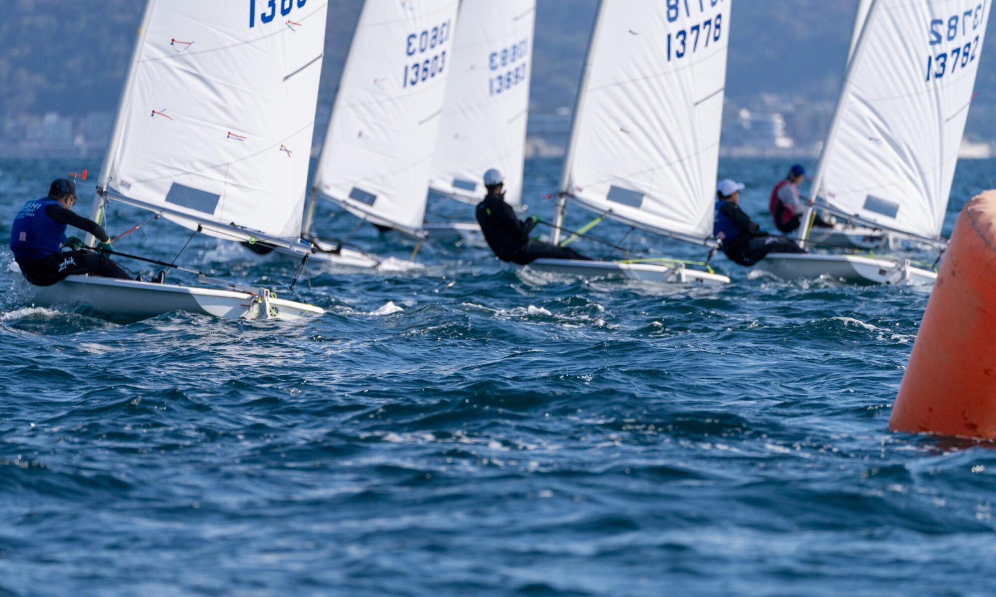 投稿日: 2019年10月19日2019年10月19日AJ05 最後の下りで逆転小雨、1〜2mの中、両クラス同時スタートで第1レースが実施されました。ノーマルリグでは1-2-3-1までトップを走っていた永井選手ですが、最後の3マークに向かうレグで逆転を許しました。写真は金田選手のトップフィニッシュです。1レースを終えて雨が上がり晴れ間が見えてきました。天気の回復とともに風が落ち今は風待ちです。